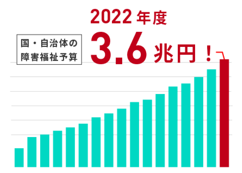 障害福祉予算は毎年3,000億円ずつ増え続けており、いまや3.6兆円規模になっています。その背景には、障害者が増え続けていることがあり、さらにそのニーズを満たすべく障害福祉事業所も増え続けているのです。いっぽう、障害福祉事業所の運営に必須となる「サービス管理責任者」「児童発達支援管理責任者」といった資格は、平成31年度から取得要件が厳しくなりました。事業所の需要増加に対してサビ管・児発管・看護師の確保が難しくなっている状態であり、彼らを紹介することのできる人材紹介サービスにはオファーが殺到しています。